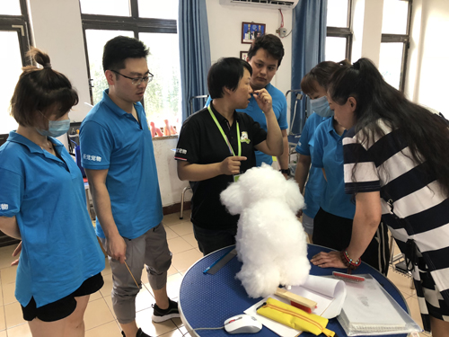今天,我们圣宠宠物美容师培训学校第2期行为美容师B级班在老师的带领下,进行了狗狗的实操示范课程,让同学们在进行实操之前能够了解这个过程,为后期的实操打好基础。