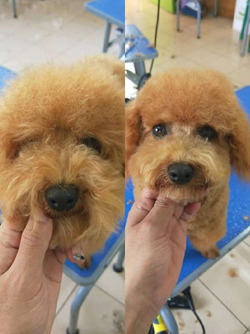 这只狗狗美容后,显示出了炯炯有神的大眼睛,头部的造型更加圆润,给人一种可爱卖萌的感觉,让人看了就想亲近。