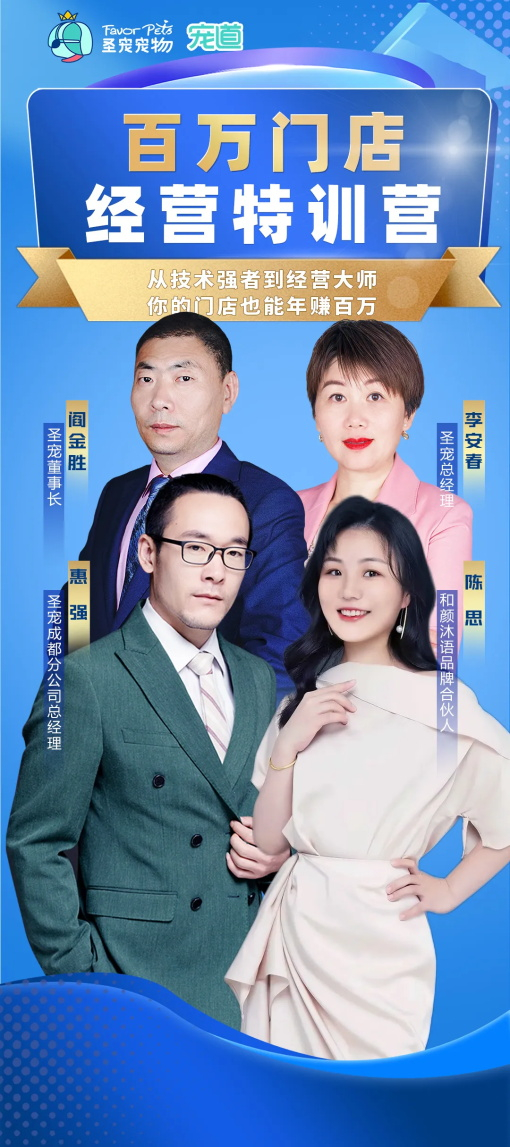 《百万门店特训营》:当天运用就见效,每次都有新收获! 本周,圣宠《百万门店经营特训营》·成都站圆满结束,来自全国的新老加盟商齐聚在这里,由圣宠宠物董事长阎金胜、总经理李安春亲自授课,还在原有的基础上增加了和颜沐语专场培训,打造了为期6天的系统化培训+实... 更多>>